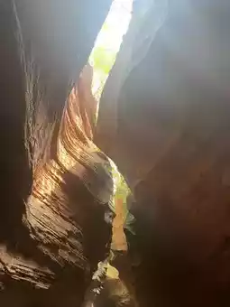 亮点 1️⃣ 光影变幻:最佳观赏时间为上午 11:00 至下午 2:00,此时阳光直射谷底,红色砂岩壁由金橙色渐变为玫瑰红,最终变为深紫色。雨后第二天晴空万里时,景色最为壮观(请确认景区开放时间)。