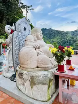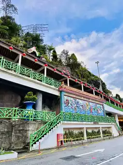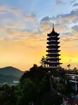 在云顶高原享用了一顿丰盛的晚餐后,我沿着蜿蜒的小路前往清水岩庙,原本以为只会看到薄雾和凉爽的空气。通常,高原地区总是笼罩在雾气之中——神秘而朦胧。但这一次,大自然赐予了我难得一见的景象。暴雨过后,夕阳穿透云层,将天空染成了温暖的金色。标志性的九层宝塔高耸入云,在金色的光芒映衬下,直插云霄。