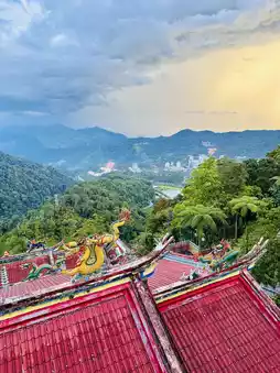 雨后的景色在清新的空气中闪耀着光芒——红灯笼、雕刻的龙、石板路依然闪闪发光。我静静地漫步在寺庙中,手里拿着相机,我知道我捕捉到了一个即使是云顶的云雾也无法掩盖的瞬间。这里的日落不仅仅是光线——它是宁静,它是诗意,它是时间的静止。