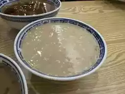 花生汤也同样令人惊艳。汤汁温暖浓郁,散发着满满的烤花生香气,回味无穷。口感如丝绒般细腻,显然花生磨得非常细,慢火熬煮至完美。如今,想找到这么美味的花生汤真是不容易了。