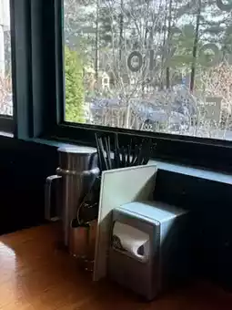 这是一家经过认证的餐厅,餐桌上有认证标志,餐厅门前也挂着蓝色丝带。❤️