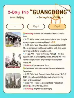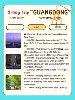 准备好体验中国南方风情了吗?🌶️🍚 广东,尤其是广州,是一座充满活力、文化底蕴深厚、美食遍地、现代气息浓郁的城市!以下为您精心准备了一份轻松的北京至广东两日游行程!✈️💫
