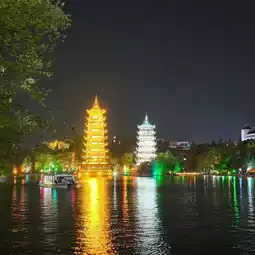 你还可以乘船游览,从不同的角度欣赏双塔。白天也很不错,但夜晚才是它真正的魅力所在。这里不是那种让人筋疲力尽的活动,而是一个可以放松身心、欣赏美景的好去处。如果你在桂林,这里绝对是必游之地,特别是如果你喜欢城市灯光和水景的话。