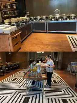 🍳餐饮:早餐在一楼的自助餐厅供应,种类丰富,味道也很棒。有6种粥,西式烘焙食品较多,中式点心相对较少,但整体味道非常好。💁♂️