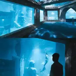 号展厅的360°水下隧道令人震撼。坐在玻璃墙前,等待成群的鱼儿游过,然后按下快门,每一张照片都是杰作。5️⃣9