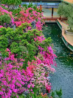 这里是广州著名的“赏樱胜地”。每年春天,樱花如约盛开,与古朴的岭南建筑交相辉映。一踏入园中,仿佛置身于一幅古画之中:粉嫩的樱花环绕着飞檐翘角的亭台楼阁,池塘边的垂枝樱花随风摇曳,倒映在清澈的湖面上。美得让人移不开眼,恨不得立刻按下快门!