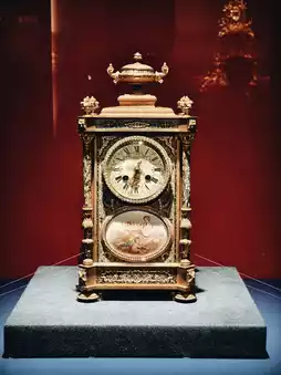 在昏暗的房间里,一座镀金铜制音乐钟,配以旋转的鸭子和莲花,在玻璃罩内缓缓移动。当机械天鹅在水面上翩翩起舞时,我不禁想象起乾隆皇帝与蒙古贵族共进晚餐的场景——钟声与《茉莉花》的旋律交相辉映。2️⃣