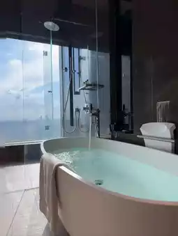 ▫️白天参观完大剧院展览,回来后直接跳进高空泳池~
