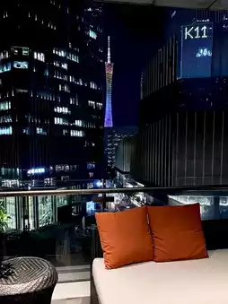 #广州酒店【来广州必住这家酒店‼️】我的闺蜜没骗我!在广东卓美亚酒店连续住了三天,省了一晚钱。💰从房间抬头看向露台,可以看到纤细的腰身。🌠一打开窗户,夜景就美得让人窒息!酒店位于天河区中心地带,步行5分钟即可到达地铁站,打车到广州塔也只是起步价~