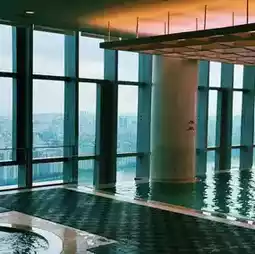 View: This is the best pool I have ever swam in! 63F, facing the Guangzhou Tower, overlooking the Liede Bridge from afar; the floor-to-ceiling windows reflect half of the pool, as if the city's starlight has fallen into the blue water at this moment, rippling with light