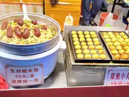 特色美食包括:直径18厘米的超大凤梨包、各种口味的饼干、鸡翅饭、香肠糯米饭、一口炸包、漂亮的冰淇淋鸡蛋仔、章鱼烧、超大蟹肉饺、韭菜煎饺等等,让您一次品尝多种美味。