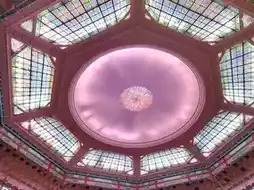 这座殿堂式建筑巧妙地融合了中西建筑风格,有机地结合了中国传统宫廷建筑和西方钢筋混凝土结构,开创了中西建筑融合的新纪元。这座高47米、跨度71米的空间内没有一根立柱,主要依靠隐藏在墙体间的八根巨型立柱支撑着东南、西北、东北四个方向跨度达30米的大型钢桁架。主桁架支撑在钢桁架之上,再由钢桁架支撑八角形大厅屋顶。