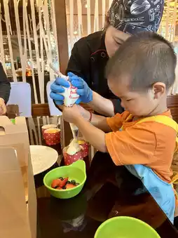 一位成人带一个孩子,300+元:自助餐+半天亲子课程。