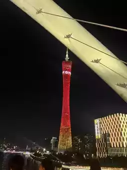 • 夜间灯光秀:广州塔在夜幕降临后,五彩缤纷的LED灯光变换着图案,将珠江映衬得更加迷人。#中国旅游 #广州旅游