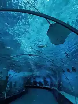 首先来到吉尼斯世界纪录巨型水族箱,欣赏如梦似幻的壮丽景色——驻足片刻,以绚丽的珊瑚为背景,拍一张全景照片!随后,穿过令人叹为观止的360°海底隧道(最佳拍照角度在隧道中段,那里经常可以看到鳐鱼和鲨鱼聚集在头顶上方)。千万不要错过精彩的海狮表演——坐在前排,拍一张完美的“太空步”自拍。