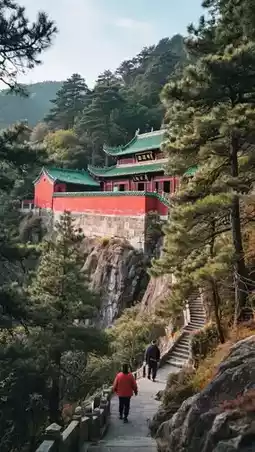 接下来,沿着百莲湖畔步道漫步,湖面倒映着青山白云。湖中一座小岛上,矗立着一座六角亭,宛如水墨画的点睛之笔。沿途,您可以看到“长寿井”、“炼丹炉”等古迹,每一处都蕴藏着道家修炼的故事。