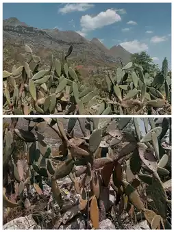 ✨Shooting tips: Compress the background to highlight the texture of the cactus pads and the layering of the canyon.