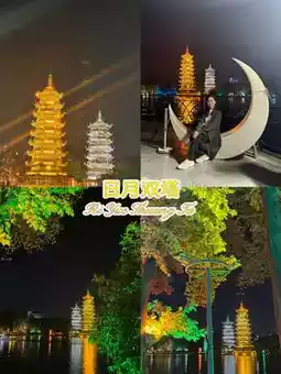 2. 日月双塔 - 您可以在那里乘船游览湖泊⛴️,或在花园里漫步/穿着传统中国服饰拍照