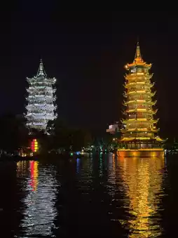 白天,桂林的景色令人叹为观止。乘船游览漓江,群山如画,宛如一幅天然水墨画。🌄 夜晚,两江四湖灯火璀璨,营造出一个梦幻般的仙境。✨ 如此浪漫,让人流连忘返。