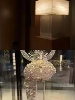 - 设计风格:大堂气派非凡,装饰着传统的苗族银饰。水晶吊灯形似苗族头饰,别具一格。客人还可以免费穿上苗族服饰,在背景前拍照留念。贵州茅台酒店大堂设有展示区,陈列着当地特色美食。-