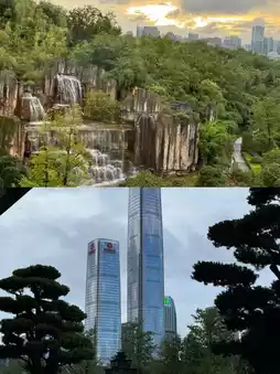 户外景观:酒店户外花园内设有黄果树瀑布微缩景观,在特定时间开放,景色十分壮观。天气晴好时,在花园的户外茶室品茶,是一种惬意的体验。-