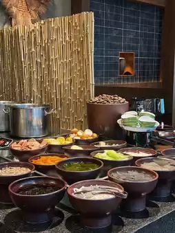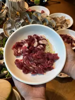 招牌麻辣锅非常合我的口味,甚至比外面那些重庆大锅还要好吃。牛肉也是现切的。这家自助火锅店主打关岭鲜切牛肉,包括各种美味部位,如肋眼、牛腱、牛腩等等~