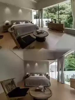客房拥有落地窗👀和私人浸泡池♨️