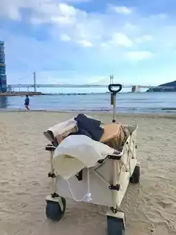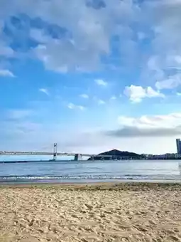 广安里海滩宽阔洁净,是理想的野餐地点!附近有很多咖啡馆和餐厅,您可以轻松购买外带美食,在海边享用。夜晚,广安大桥璀璨的灯光更添浪漫气息,与朋友或爱人共度的时光将令人难忘。