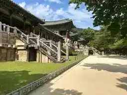 佛国寺是庆州亲子游的绝佳去处。通往寺庙的小路绿树成荫,漫步其中,既轻松又舒适。如果您在四月中旬到访,寺庙内将迎来绚丽的重瓣樱花,是欣赏自然美景的理想之地。