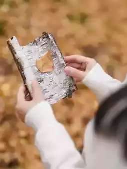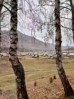 虽然白桦林只剩下光秃秃的枝干,但落叶松的针叶轻轻地堆积在地上,覆盖着金色的秋叶🍂 可以想象,当森林色彩斑斓时,该是多么壮丽~意外地发现了一块像卷轴一样的白桦树皮,让我想起了李娟写在白桦树皮上的生动诗句。