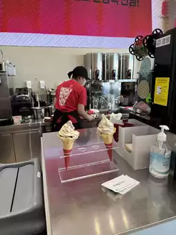 融化后会吸收冰淇淋,变得黏糊糊的,但是只要4500韩元,而且味道不错,所以可以忍受。⚠️ 如果