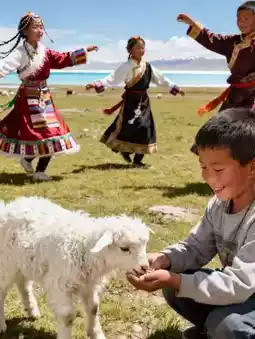 租借红色雨靴,走进盐湖,教孩子们捕捉对称倒影,跳跃拍摄水花,拍出生动有趣的照片!一定要体验盐雕工作坊,跟师傅一起制作迷你盐骆驼,成品可以兑换盐灯纪念品🎐 在盐湖博物馆,观赏盐花晶体,了解采矿历史,收集不同的盐晶体装进小瓶子里,带回家培育晶体~ 下午参观附近的牧场,喂小羊羔,藏族小朋友教孩子们跳郭庄舞,挤牦牛奶时孩子们发出“好可爱”的尖叫!