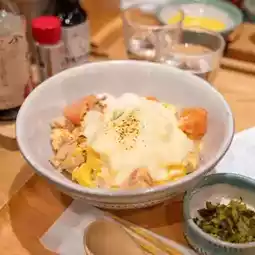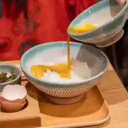 酱油蛋饭和番茄芝士蛋饭(新鲜鸡蛋打入碗中)。