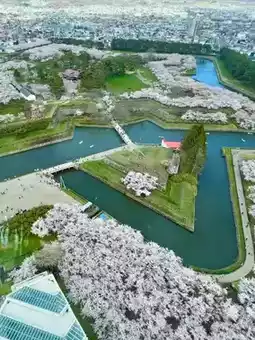 五棱郭公园是函馆市的标志性建筑,建于日本第一座西式堡垒“五棱郭”的遗址之上。星形护城河与春季盛开的樱花交相辉映,构成一幅令人叹为观止的美景。登上五棱郭塔,俯瞰这如梦似幻的景象,仿佛置身于童话世界。🏞