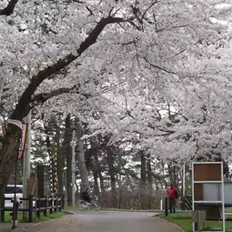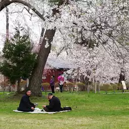 • 樱花盛开时,山上常有残雪,与樱花交相辉映,构成一幅令人叹为观止的季节美景。