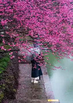我觉得雨天赏梅的景色更加美丽,雨滴落在地上,花瓣飘落,美不胜收!