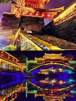 松城拥有灰褐色的瓦片和熙熙攘攘的街道,邀您踏上穿越千年历史的奇妙旅程。这里宛如《清明上江图》的鲜活写照,是一座镌刻着宋代优雅风韵的文化圣地。在这里,您将化身为宋代居民,漫步于热闹的集市,观看商贩兜售商品,欣赏艺人表演,与身着古装的人们擦肩而过。夜幕降临,灯光亮起,精彩绝伦的《松城情缘》将带您重返宋代的辉煌时代。在松城,历史不再是冰冷的文字,而是您可以触摸、感受和品味的鲜活体验。