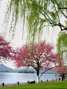 春季(3月至4月):粉嫩的桃花和翠绿的柳树最美!推荐前往北山路拍摄白堤全景。
