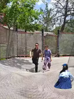适合儿童、亲子游乐区,设有无动力游乐设施、攀爬网等