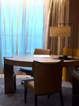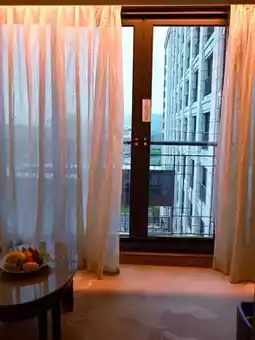 房间的装潢略带商务气息,但宽敞的落地窗搭配轻盈的窗帘,营造出温馨舒适的氛围