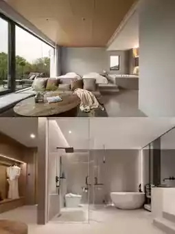 配备私人庭院、餐厅、客厅、KTV、旋转楼梯,甚至还有由建筑师设计的室内恒温泳池。