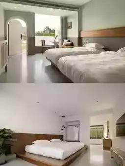 拥有22间客房,18种房型。每间客房都拥有私密、宽敞、明亮的休憩空间,巧妙的光影交错与窗外葱郁的绿意相映成趣,营造出建筑与自然和谐共生的温馨画面。