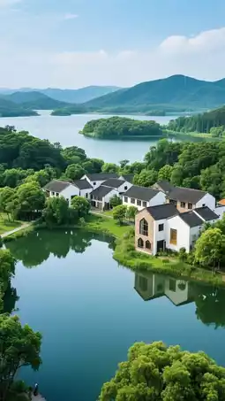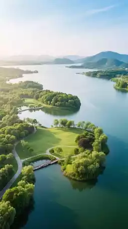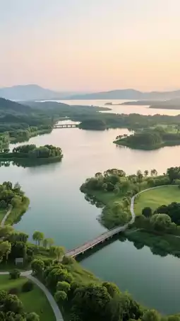 **九龙湖生态公园**(又名“凤凰湖·九龙源风景名胜区”)位于杭州市余杭区黄湖镇,距杭州市区约60公里。它是一片隐藏的绿洲,融合了**清澈的湖泊、溪谷、竹林古道以及野生动植物**。