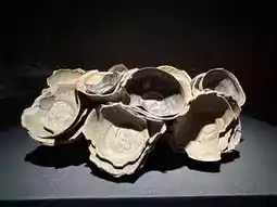 一件来自天目窑的大型叠烧瓷器,上层为黑釉瓷,下层为青瓷碗,层层叠叠,宛如“千层蛋糕”,再现了宋元时期临安瓷器业的辉煌。