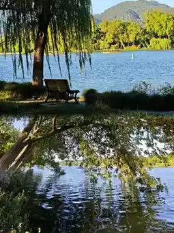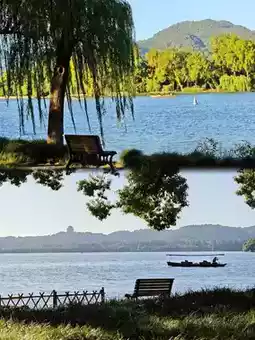 位于苏堤亚地桥附近,寻找“苏堤093”的指示牌(见文末P5图)。这张看似普通的长椅,其实是西湖的隐藏拍照圣地!一边是充满生机的古树枝干,另一边是微风轻拂、波光粼粼的碧蓝湖水。清晨,坐在长椅上,看着慢跑者从身边经过,小船缓缓驶过湖面,所有的烦恼都烟消云散。建议早上7点到9点之间前往,此时光线柔和,游客较少,每张照片都像电影场景一样美。