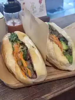 酥脆的外皮加上丰富的馅料,这款法棍美味到让你一口就爱上!推荐牛肉口味。肉质鲜嫩多汁,配上腌萝卜、黄瓜和香菜,简直让人欲罢不能!🤤