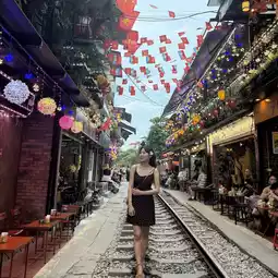 河内火车街是河内必游景点!地图上显示有两个火车停靠点,虽然风景很美,但警察封锁了道路,所以我进不去。于是我稍微挪了一下,去了火车站附近的火车停靠点,那里可以免费进入,气氛也很好!当真正的火车穿过狭窄的巷道时,那种感觉真的既刺激又奇妙。在铁轨旁的小咖啡馆里喝杯饮料,等待并近距离观看火车经过,这是只有在河内才能体验到的独特经历。