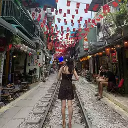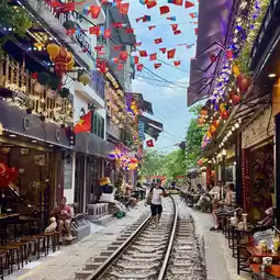 河内火车街建于1902年法国殖民时期,是南北铁路干线的一部分,位于河内老城区。这条独特的街道每天有3-4趟列车经过,游客可以在铁轨两侧的咖啡馆和餐厅欣赏火车的景色。