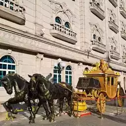 其建筑风格融合了欧洲元素,因其雄伟独特的设计,常被誉为“东方卢浮宫”或“童话城堡”。