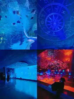 • 270°全景隧道:鱼儿在头顶游弋,站在隧道中央,以45°仰望,捕捉如同电影《她》中浪漫的光影效果